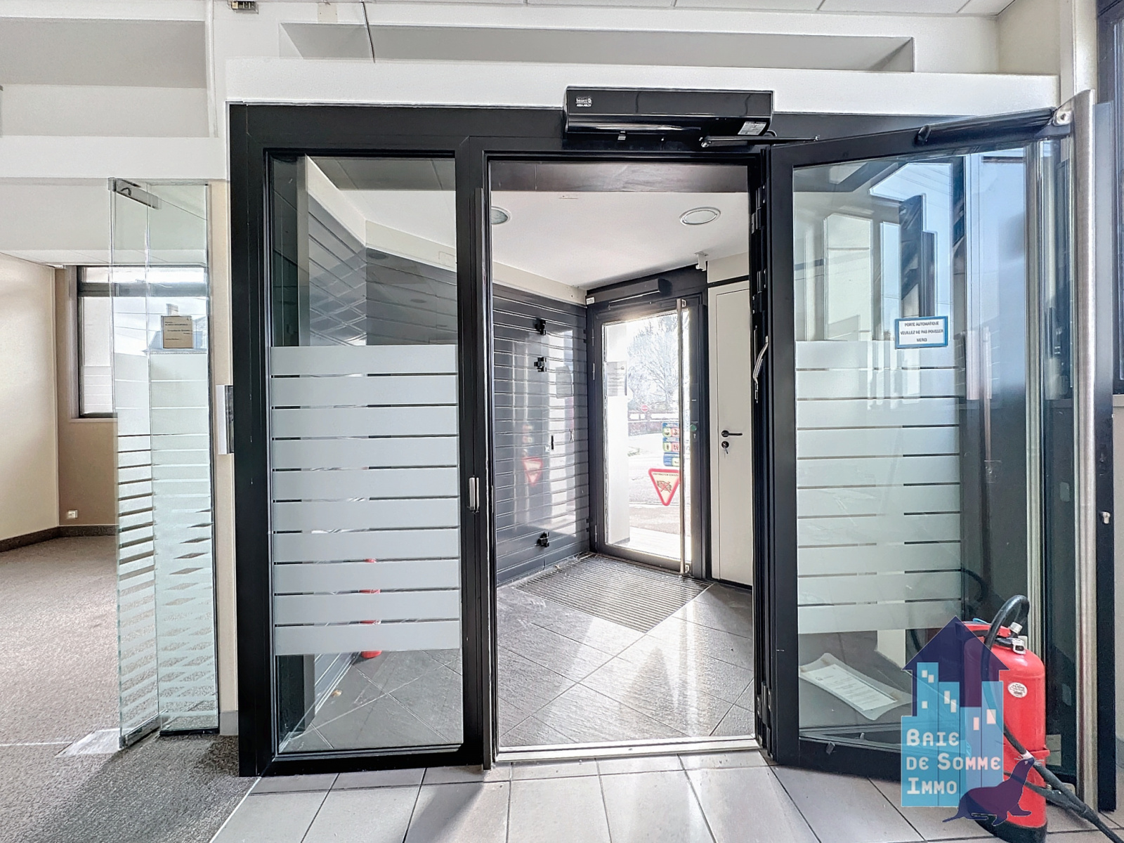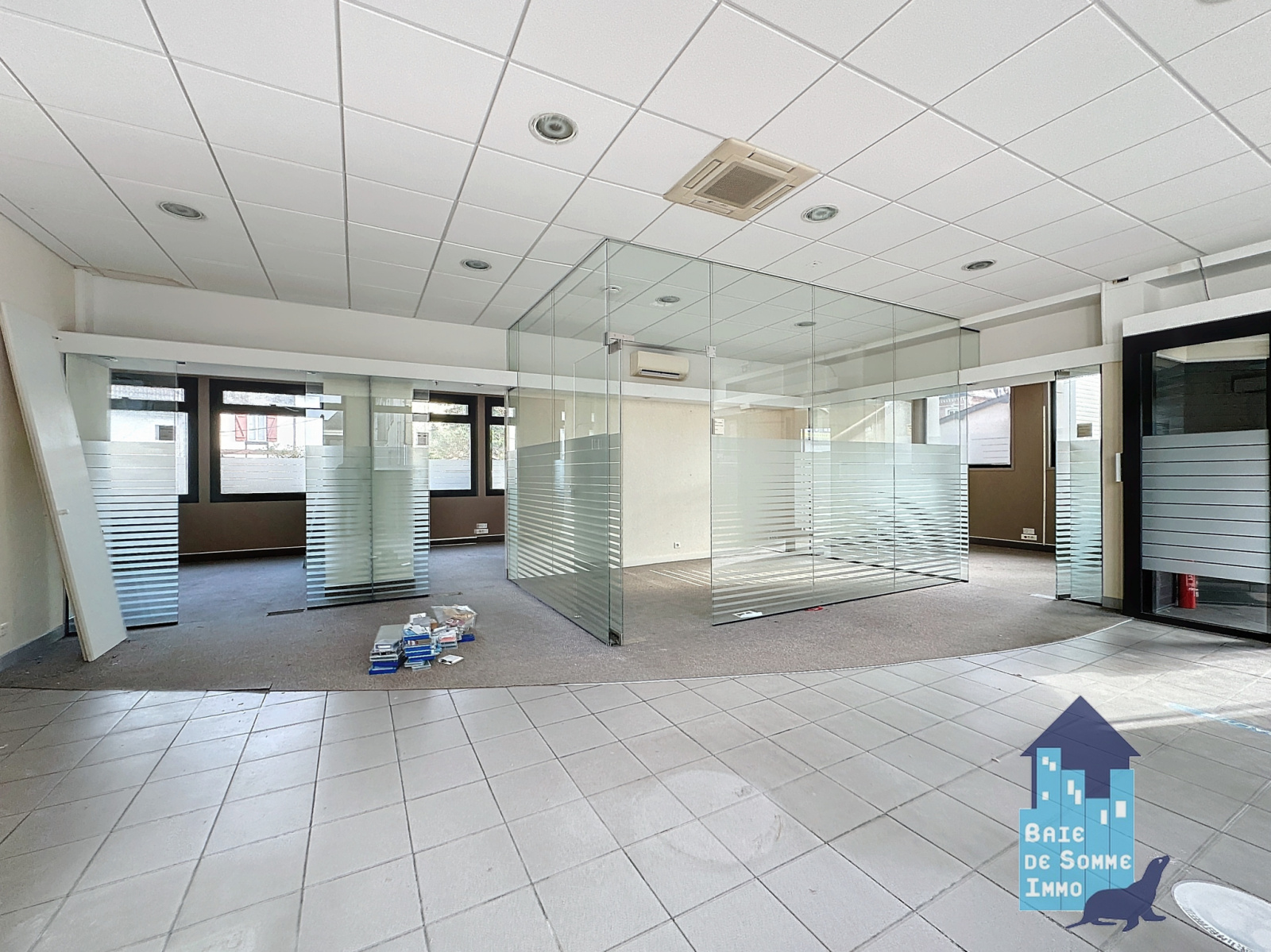 Un sas d'entrée, avec un local technique (ancien distributeur), un grand espace de vente ou d'accueil très lumineux, 4 bureaux, une salle des coffres, un dégagement, des saniatires, avec 2 WC dont l'un PMR), une réserve avec issue de secours.